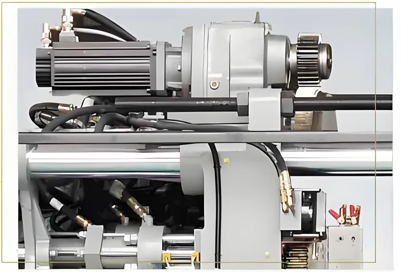 The injection unit significantly reduces cycle times by combining two independent material tubes that operate synchronously. Made from specially treated foreign alloy steel, these components resist corrosion, wear, and high temperatures. The PID temperature control system includes features such as cold-start prevention for the screw, wire break detection, and maintains temperature variations within ±1°C.